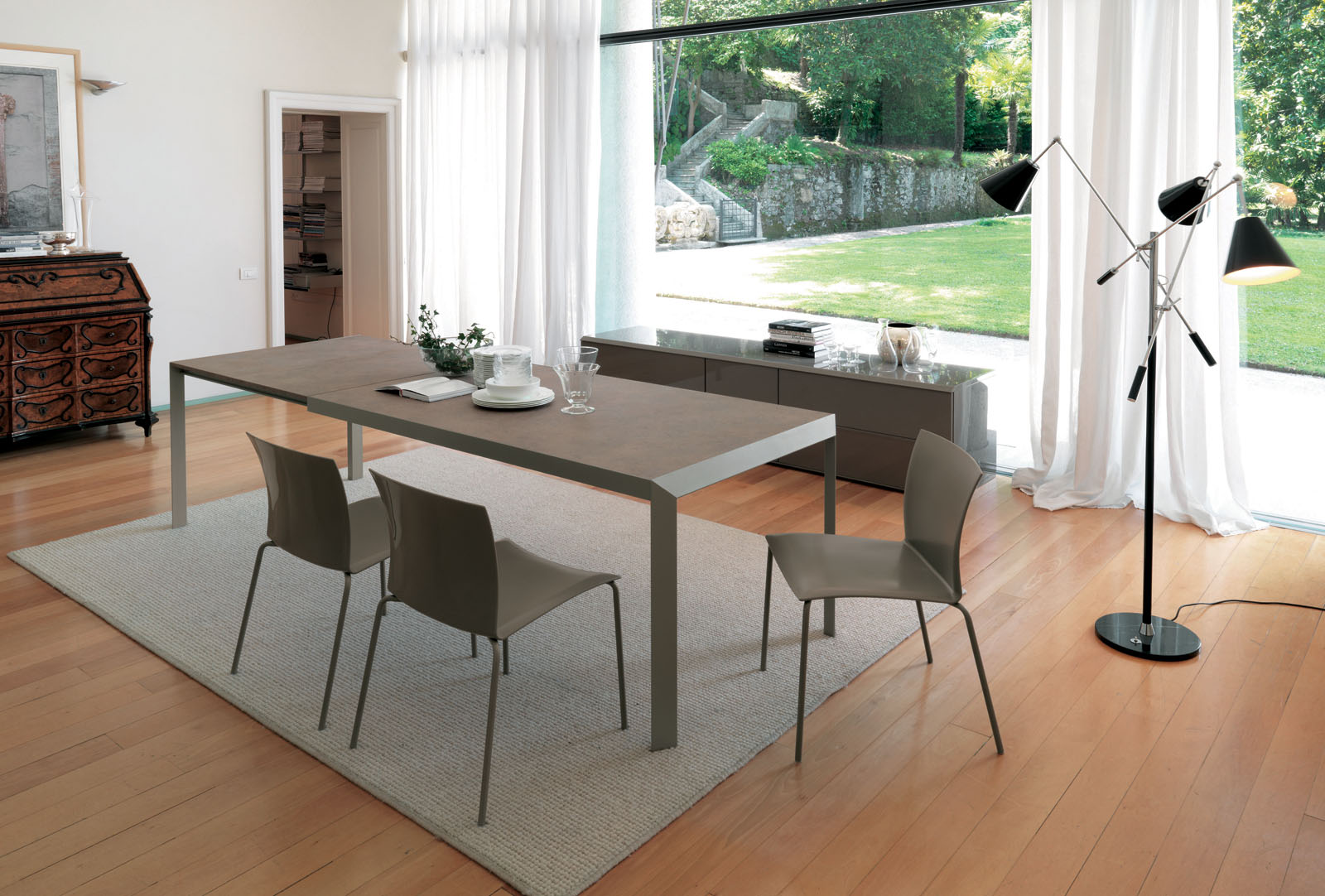 De belles et longues tables, avec des plateaux en verre, en céramique, en bois, en HPPL….